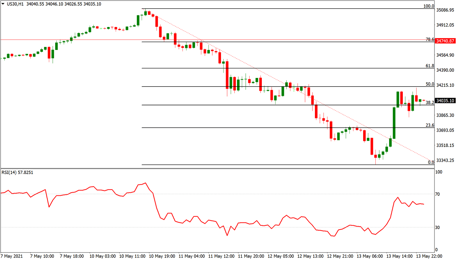 While technology stocks remain under pressure, investors are turning to value stocks, which helped the broader market to recover. The USTECH index is struggling to gain momentum, but the US30 staged an intraday comeback and is set to extend gains in the near-term. The index is approaching the 50% Fibonacci level of the recent sell-off and a breakout could pave the way for a rally towards the 34,720/40 resistance zone, and eventually the record high.