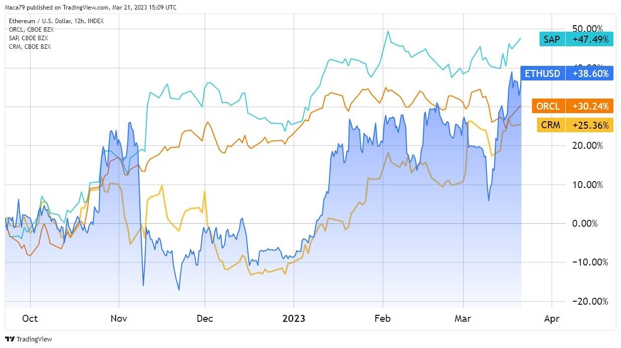 ETH vs. Oracle (ORCL), SAP (SAP), Salesforce (CRM). Source: TradingView
