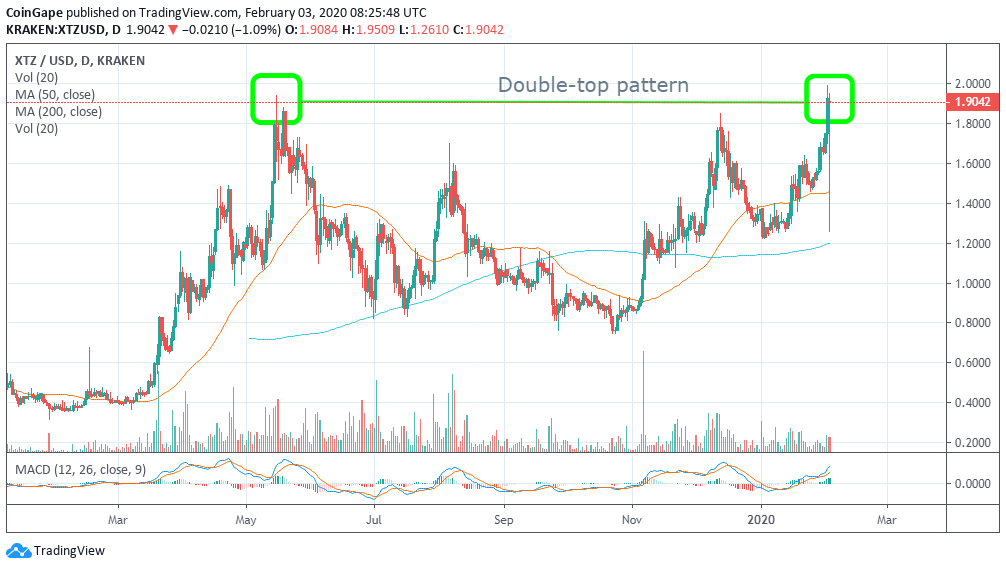 Tezos 12% surge runs into double-top pattern resistance at $2.00