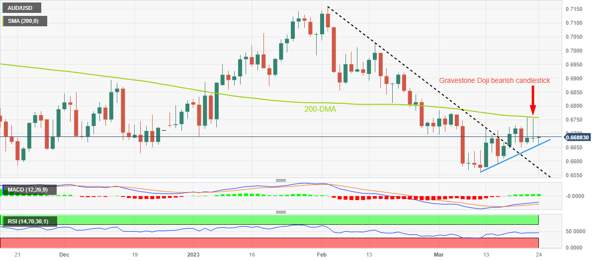 AUD/USD Price Analysis: Gravestone Doji, 200-DMA prods bounce off 0.6660 support
