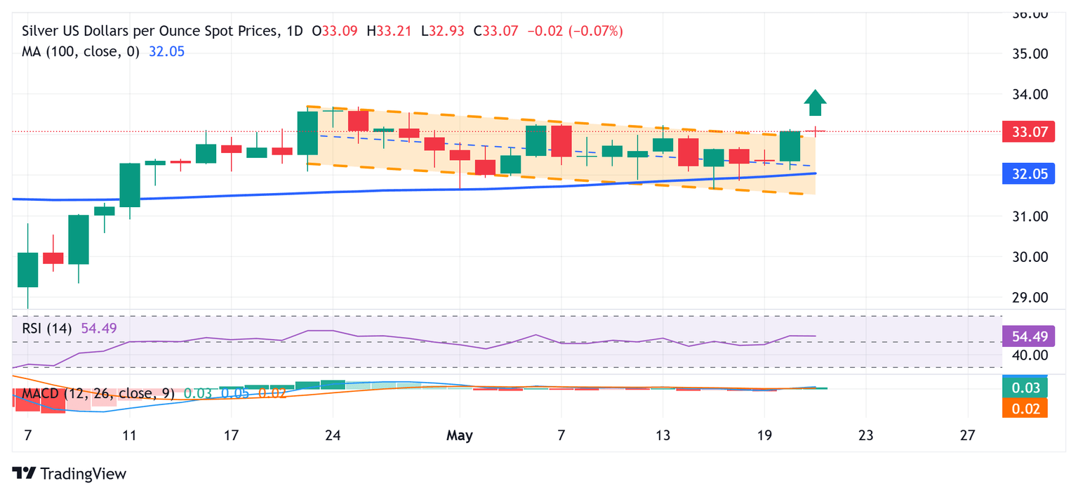 Silver Price Forecast: XAG/USD consolidates around $33.00; seems poised to climb further