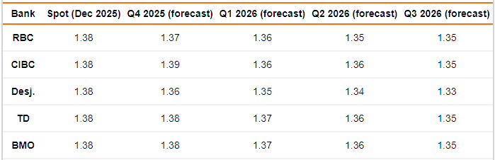 - Overall analyst expectations lean toward further USD/CAD downside through 2026, with eyes on 1.3500.