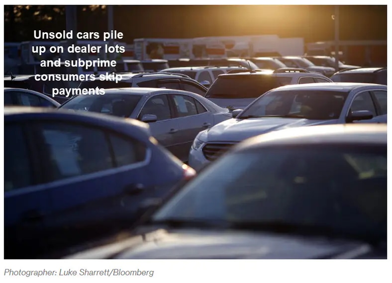 In a sign of upcoming trouble, Subprime Car Buyers Miss Loan Payments.