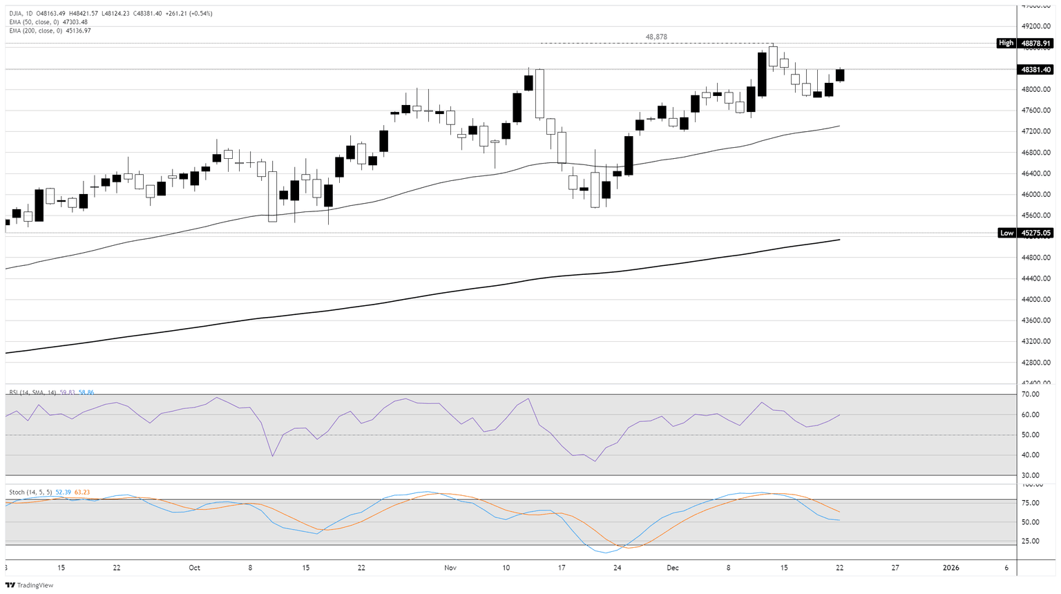 The Dow Jones Industrial Average (DJIA) gained ground on Monday, heading into the Christmas holiday schedule on the front foot as equity markets tilt into the bullish side to wrap up the trading year. Stocks tied to the AI trade rose, with big boosts coming from both the financial and materials sectors.