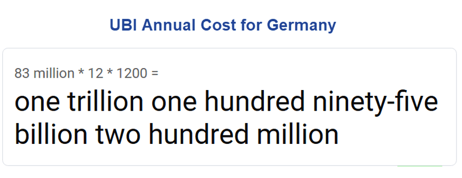 UBI for all of Germany would cost about €1.2 trillion annually.