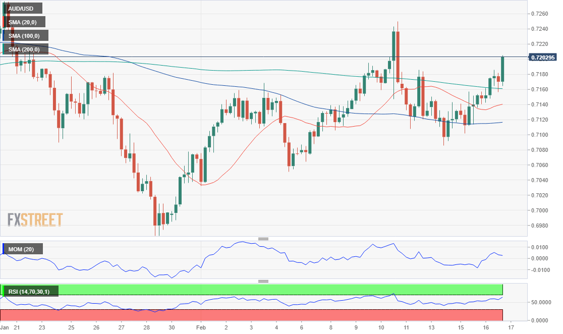 - AUD/USD offers a near-term bullish stance as it battles the 0.7200 threshold.