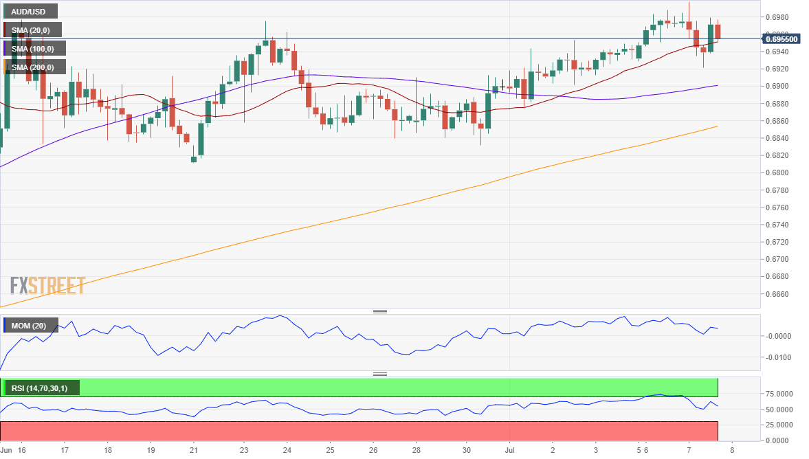 - AUD/USD is technically neutral and holding above the 0.6900 level.