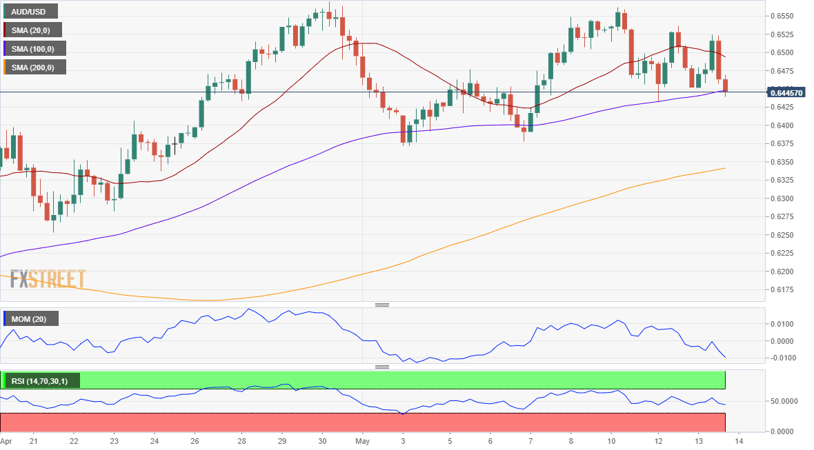 The AUD/USD pair has spent the last hours consolidating losses and seems poised to extend its decline. In the 4-hour chart, the pair continues to find support around a bullish 100 SMA, although the 20 SMA is gaining bearish strength above the current level. Technical indicators, in the meantime, stand within negative levels lacking clear directional strength. Dismal employment data has been already priced in, although a much worse-than-expected report could be the catalyst for a bearish move.