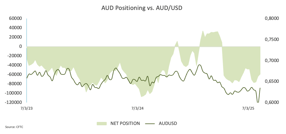 CFTC’s positioning data revealed a pullback in bearish bets on the Aussie. Indeed, net short positions have fallen to a five‑week low near 59K contracts in the week ending April 15, accompanied by a decline in open interest.