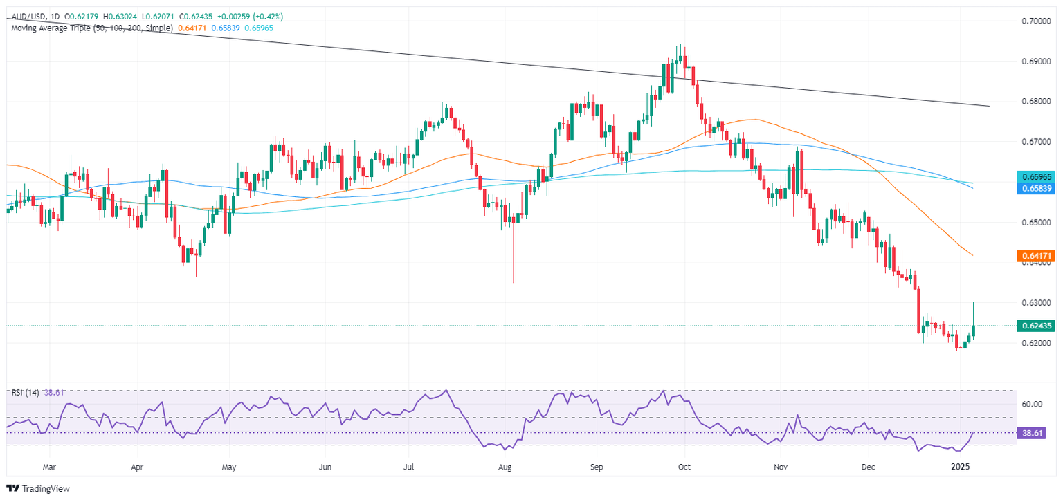 The Australian Dollar (AUD) has risen from two-year lows and hit the 0.6300 figure yet sits in the mid-range of the 0.62-0.63 area as the Asian Pacific session is about to begin. At the time of writing, the AUD/USD pair trades at 0.6245, gaining over 0.51%.