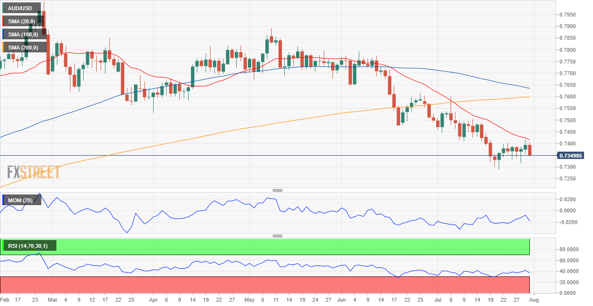The FXStreet Forecast Poll indicates that market participants are willing to keep selling the pair in the near-term, as 71% of the polled experts bet for a slide, leaving the average price at around 0.7335. However, bulls become an overwhelming majority in the monthly and quarterly perspectives, while the number of those looking for lower lows decreases below 20%.
