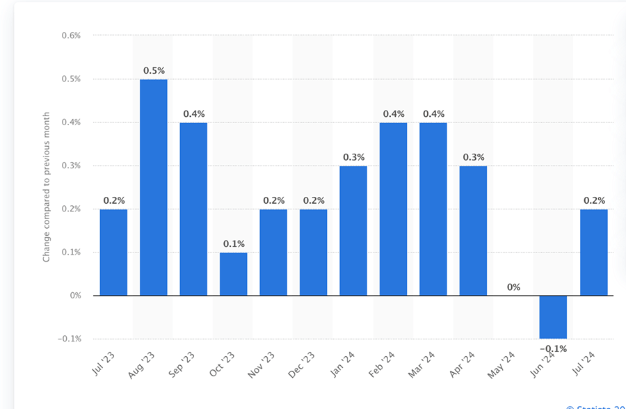 Looking at the last 12 months, 0.2 percent is generally in line with the monthly CPI increase, with May and June as outliers.