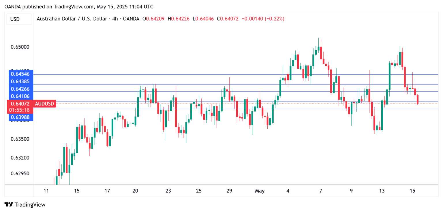 The Australian dollar is showing limited movement on Thursday. In the European session, AUD/USD is trading at 0.6412, down 0.12% on the day.