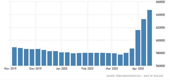 On March 19 – only on his fourth day on the job – Bailey slashed rates to 0.10% in an unscheduled decision and also expanded the Quantitative Easing program by £200 billion. The QE scheme now stands at £645 billion and that may continue rising. The BOE's pace of buying bonds is rising as the government continues supporting the economy in these troubled times. The funds go to buying medical supplies, the furlough scheme, and more.