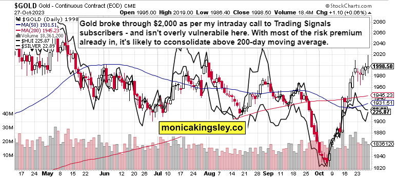 S&P 500 was stopped in the 4,180s, and core PCE only a little hotter didn‘t help stock buyers even if yields retreated from intraday highs – they did retreat first thanks to no reassessment of inflation stickiness (it is sticky, and will keep accelerating this year still), and then the Israel move lighting fire under safe haven trades. Yes, I called the gold upswing to happen during Friday on Telegram, and there was another great day in our intraday Telegram channel bringing gainful calls to clients.