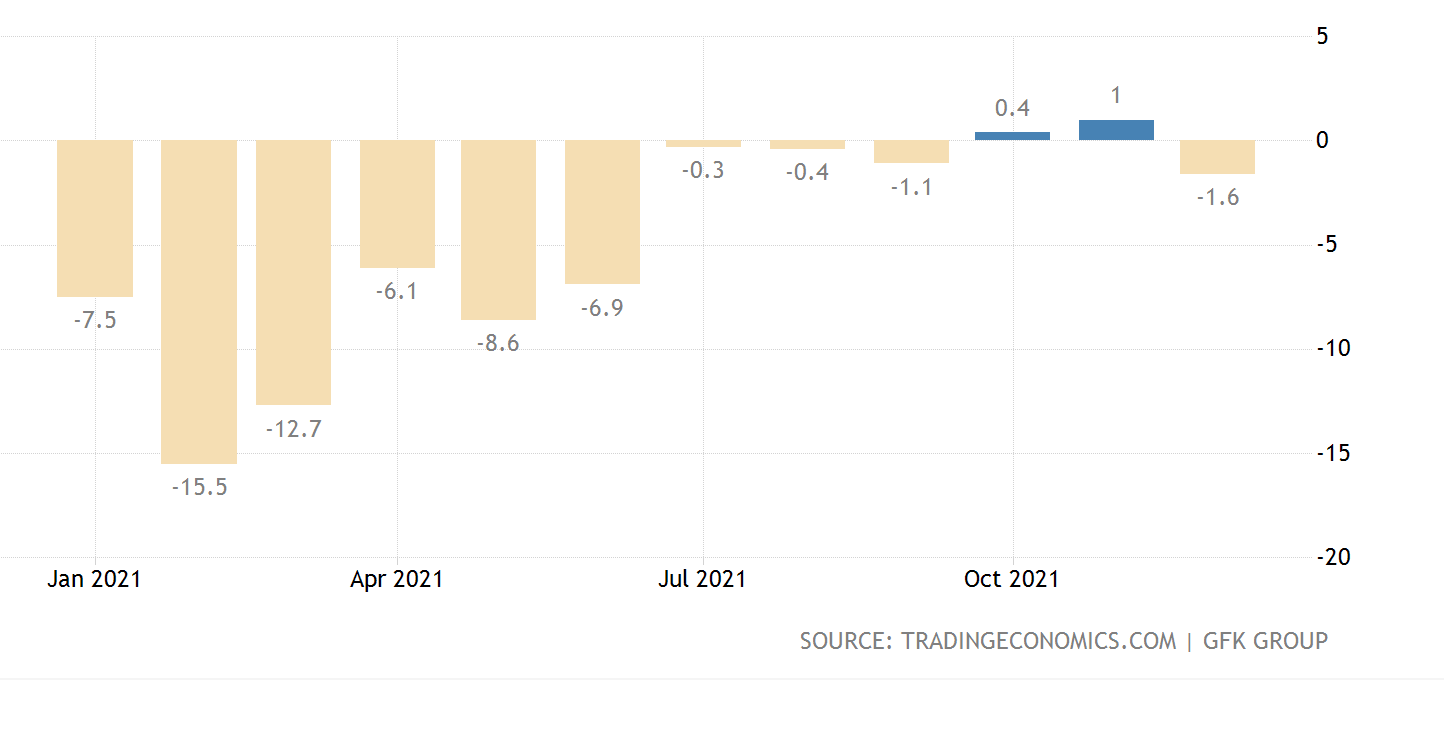 German Consumer Morale turned negative again, after only just managing a small gasp of positivity the previous month or two. That didn't last long, and I know you don't like it when I keep saying, this 'thing' isn't over yet. But it really ain't.