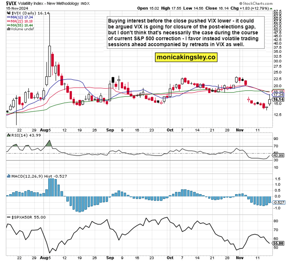 I say some buying, because it‘s uncertain whether this rebound was strong enough to repel the sellers and put in a local bottom. Therefore, I‘m bringing you not only the 4-hour intraday chart, but also the VIX and yields perspective. Notably, rates (non-)movement didn‘t result in any gold upswing, and oil as well proved it‘s not yet in bullish mode – but you‘re not surprised, I had been very public with these calls during the week, just as regarding the Bitcoin vulnerability, which is turning out as a shallow correction due to as well all the strategic reserve initiatives.