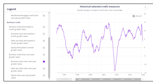 We can note that there is still a long way for the chart to fall - if it is to reach 2008 levels. Given the bleak pictures painted by both the household credit crunch and weak exports, there is a good chance that banks remain in a defensive posture and business loans continue to fall. This will hurt the job market’s recovery, as tighter credit for businesses will be an unwelcome change from the loose lending conditions that followed the 2008 recession. With interest rates having no room left to fall, it’s hard to see how much government policy can help to soften this burden on businesses.