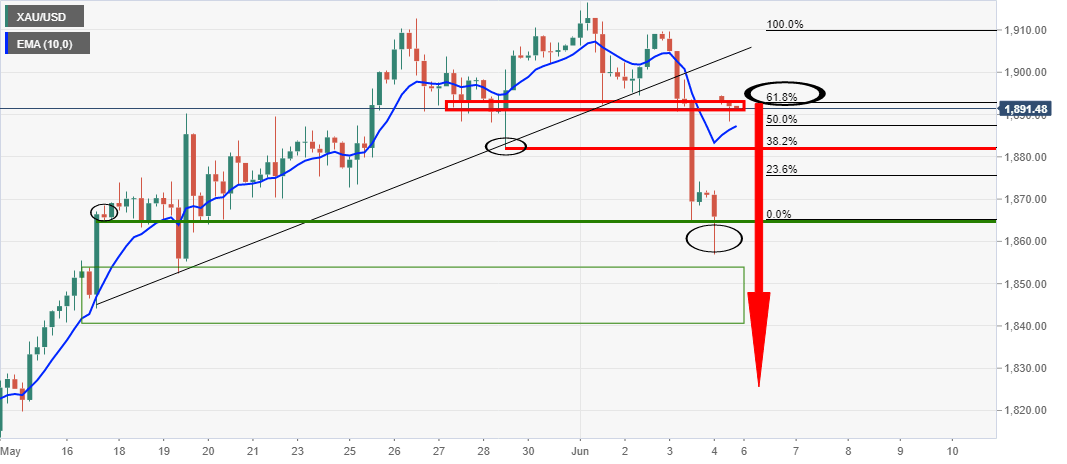The price action has been aggressive to the upside to a critical resistance on the 4-hour time frame.