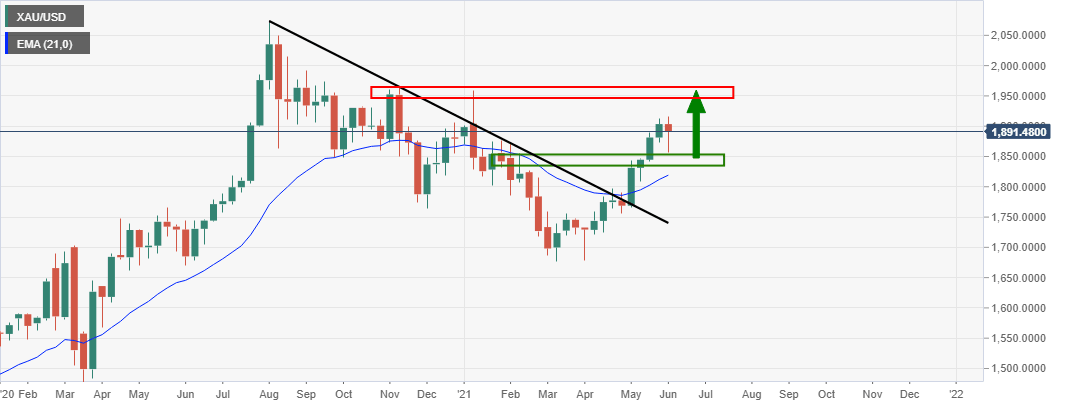 - The bulls are looking to the next weekly resistance zone.