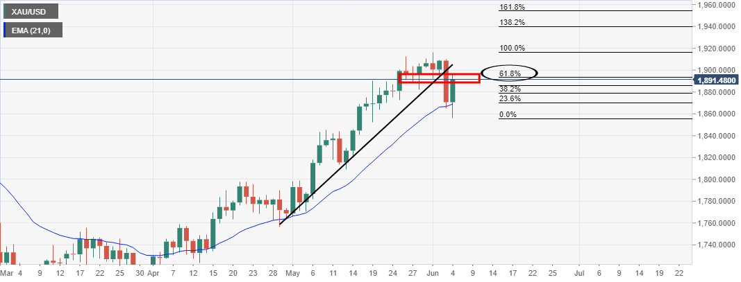Chart of the Week: Gold bears lurking below daily countertrend line resistance