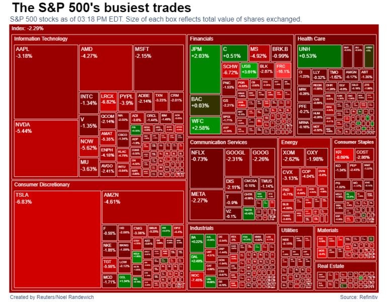 Pulled from an article written by Noel Randewich at Reuters, we can see just how grim Friday ended on Wall Street led by the tech-related heavyweights such as Tesla which dropped some 8%.