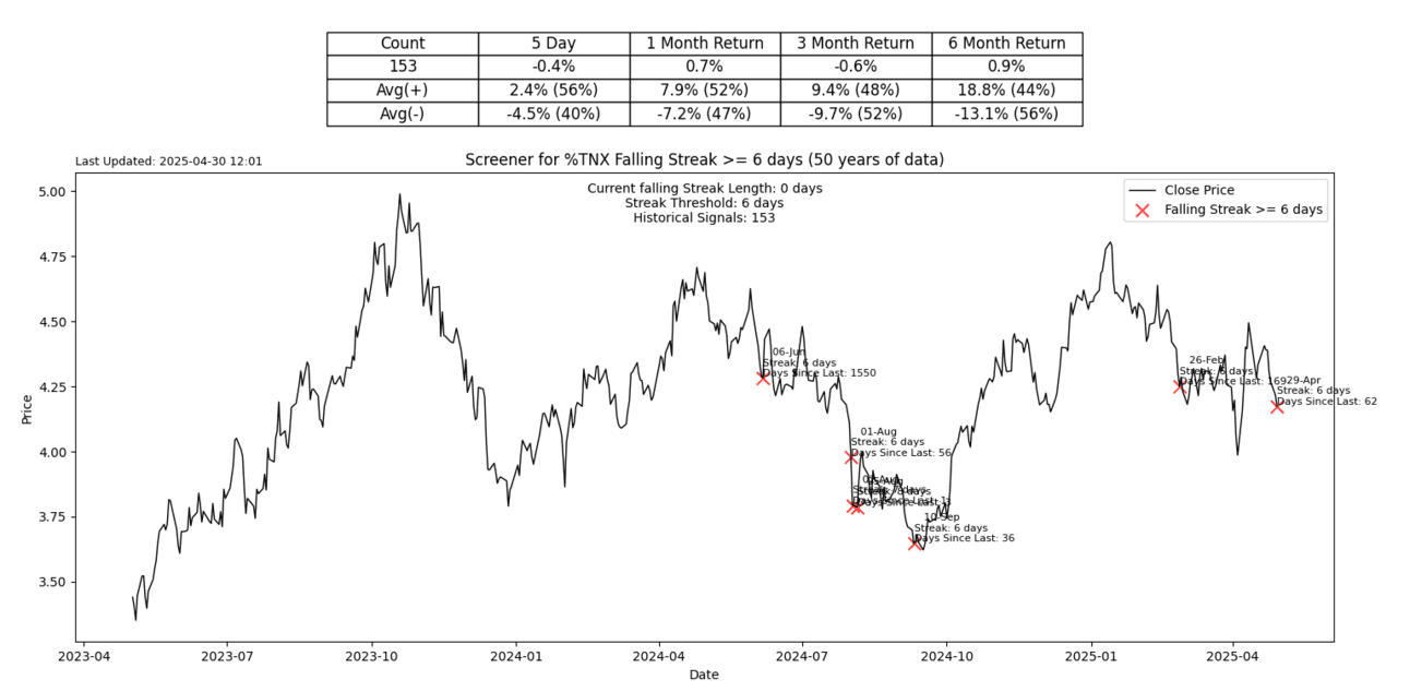 The US 10-year bond yields have been down 6 days in a row, which is also pretty rare.