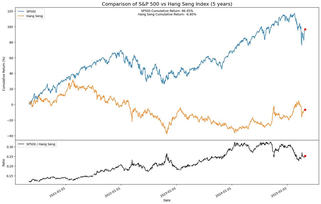 Nearly a year ago I made probably my most contrarian trade to go long China via the Hang Seng versus the US (S&P 500). I felt the Shanghai Exchange was too easily manipulated by the ruling power in China, so using the west friendly Hong Kong exchange would be fairer proxy.
