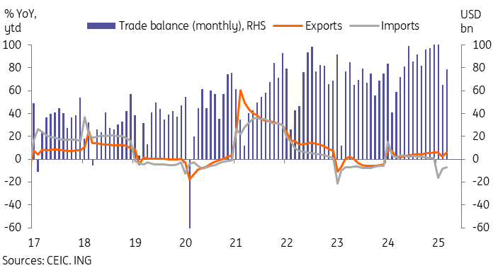 This month's data was highly anticipated, with markets looking for the first signs on how tariff might be starting to impact trade. The data showed that overall exports remained quite resilient, but that easily replaceable and price-sensitive categories are already taking a hit.