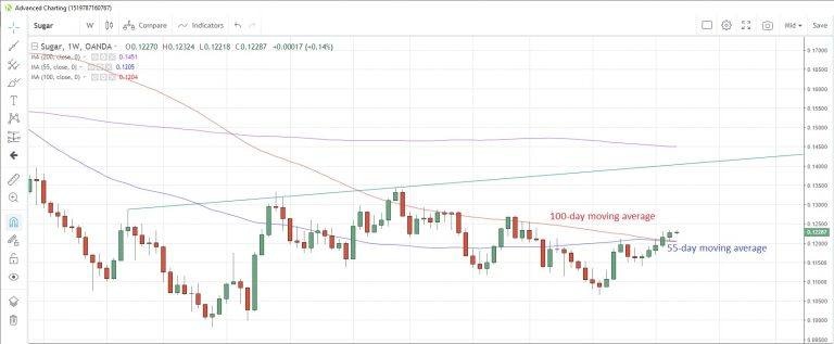 SUGAR prices also spiked higher yesterday to levels not seen since July 11. The upmove means that sugar could be on track for its sixth weekly gain in a row and appears to now have a strong foothold above the 55- and 100-week moving averages at 0.1205 and 0.1204 respectively.