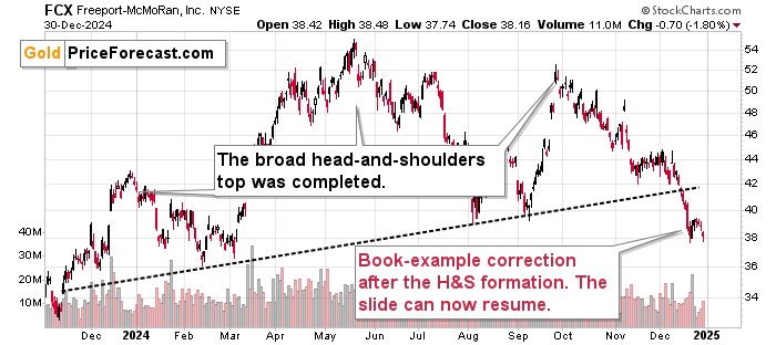 Copper is not only after a break a fake breakout above many previous highs, but it’s also after a breakdown below two rising support lines – one based on the 2020 and 2022 lows and the other based on the late-2023 and 2024 lows.