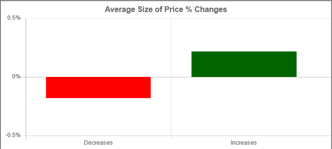 The average return on days where the price increased is 0.216%.