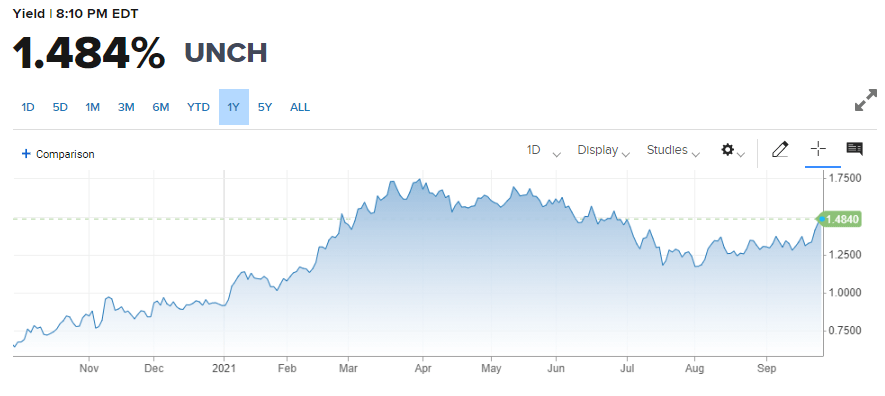 Treasury yields rose with the 10-year return rising 3 basis points to 1.491% and the 2-year rising 3 point to 0.309%.