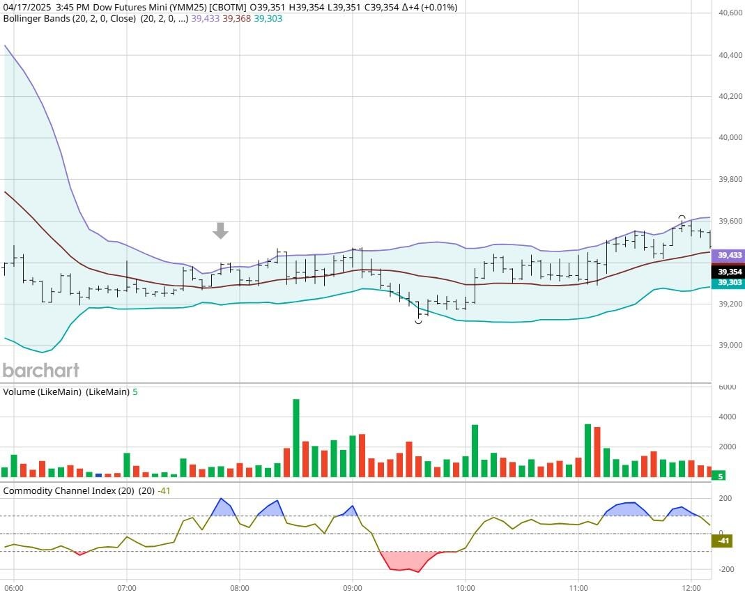 Last Thursday the ZT climbed Higher at around 8:30 AM EST while awaiting Unemployment Claims. The Dow slid Lower at the same time. Look at the charts below and you'll see a pattern for both assets. The Dow moved Lower at 8:30 AM EST and the ZT moved Higher at around the same time. These charts represent the newest version of Bar Charts, and I've changed the timeframe to a 15-minute chart to display better. This represented a Long opportunity on the 2-year note, as a trader you could have netted 20 plus ticks per contract on this trade. Each tick is worth $6.25. Please note: the front month for ZT is now Jun '25 and the Dow is Jun '25 as well. I've changed the format to filled Candlesticks (not hollow) such that it may be more apparent and visible.