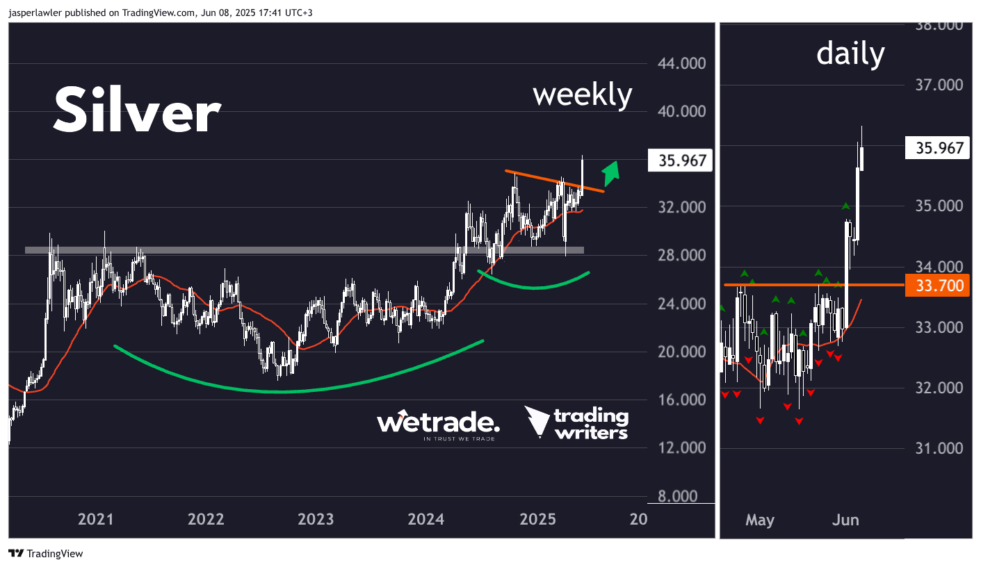 Silver has moved from circa $33 to $36 in around 5 days. That’s about 9%.