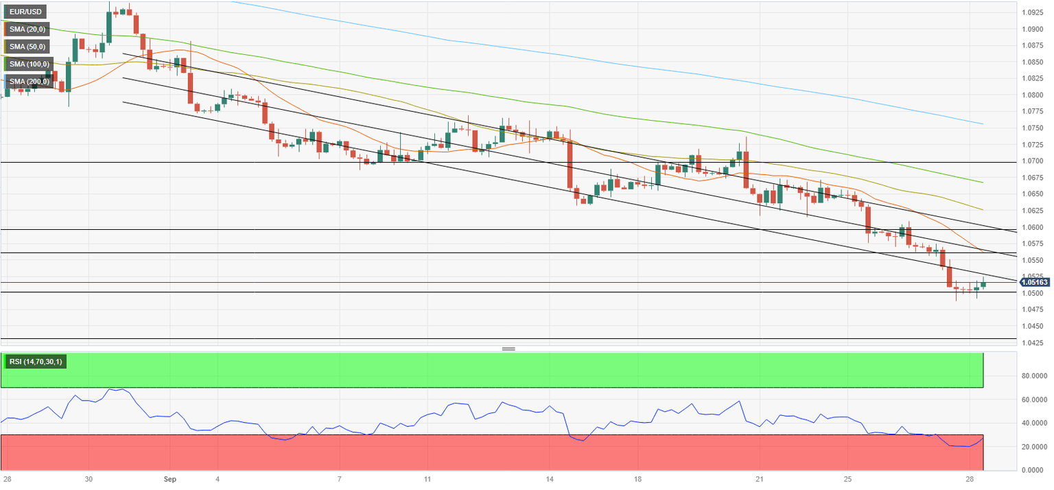 - EUR/USD dropped below 1.0500, came within a few pips of the 2023-low.