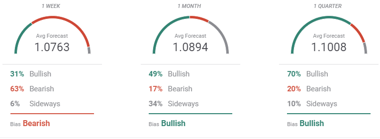 The FXStreet Forecast Poll indicates that the positive sentiment toward the dollar would remain next week, with 63% of the polled experts on the negative side. On average, the pair is seen down to 1.0763. Bulls surge in the monthly perspective, rising to 70% in the quarterly view, with the pair seen recovery toward the 1.1000 level.