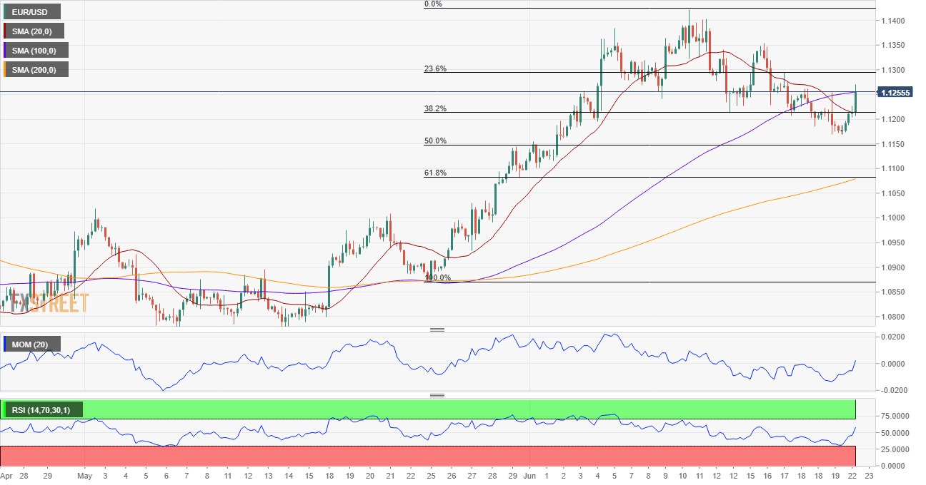 The greenback edged lower this Monday, with the EUR/USD pair hitting a daily high of 1.1269 during the American afternoon. The American dollar found some favor at the beginning of the day amid the dismal mood that kept Asian equities trading in the red throughout the session. European ones followed the lead, but the focus shifted to a continued increase in coronavirus cases in the US across the South, West, and Midwest. Wall Street, however, managed to grind higher, adding to the dollar’s weakness.