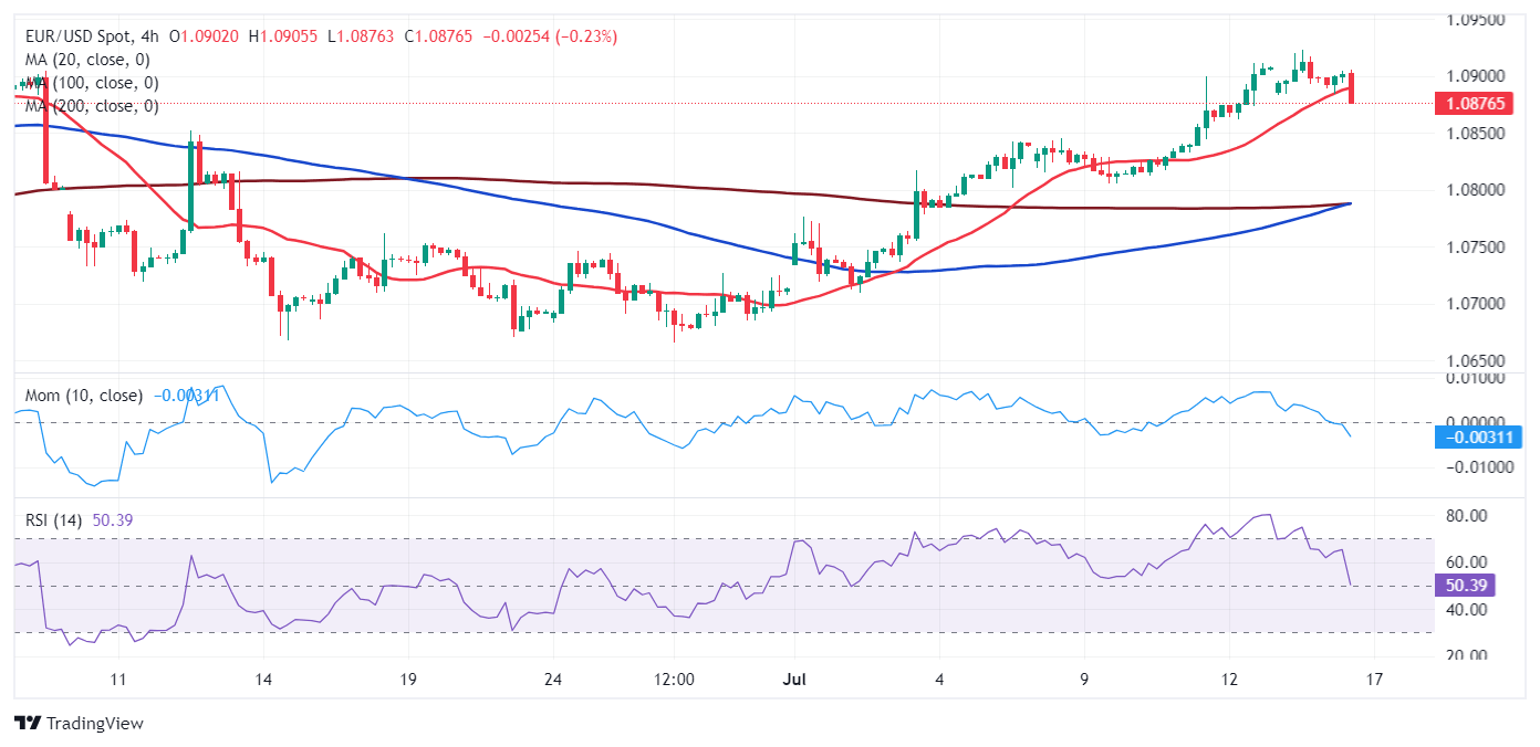 The EUR/USD pair traded with a soft tone just below the 1.0900 level throughout the first half of the day, confined to a tight range ahead of some relevant United States (US) macroeconomic figures. Optimism cooled down a bit, although demand for the US Dollar remained subdued.