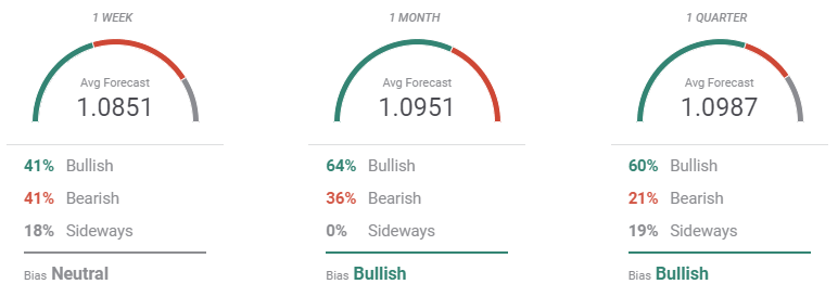The FXStreet Forecast Poll supports an upcoming correction as the pair is seen holding neutral in the weekly perspective and later advancing, although on average, it is seen holding below the 1.1000 level. Additionally, bulls in the monthly view account for 64% of the polled experts, decreasing to 60% in the quarterly perspective. Bears in the long-term, are just 21%.