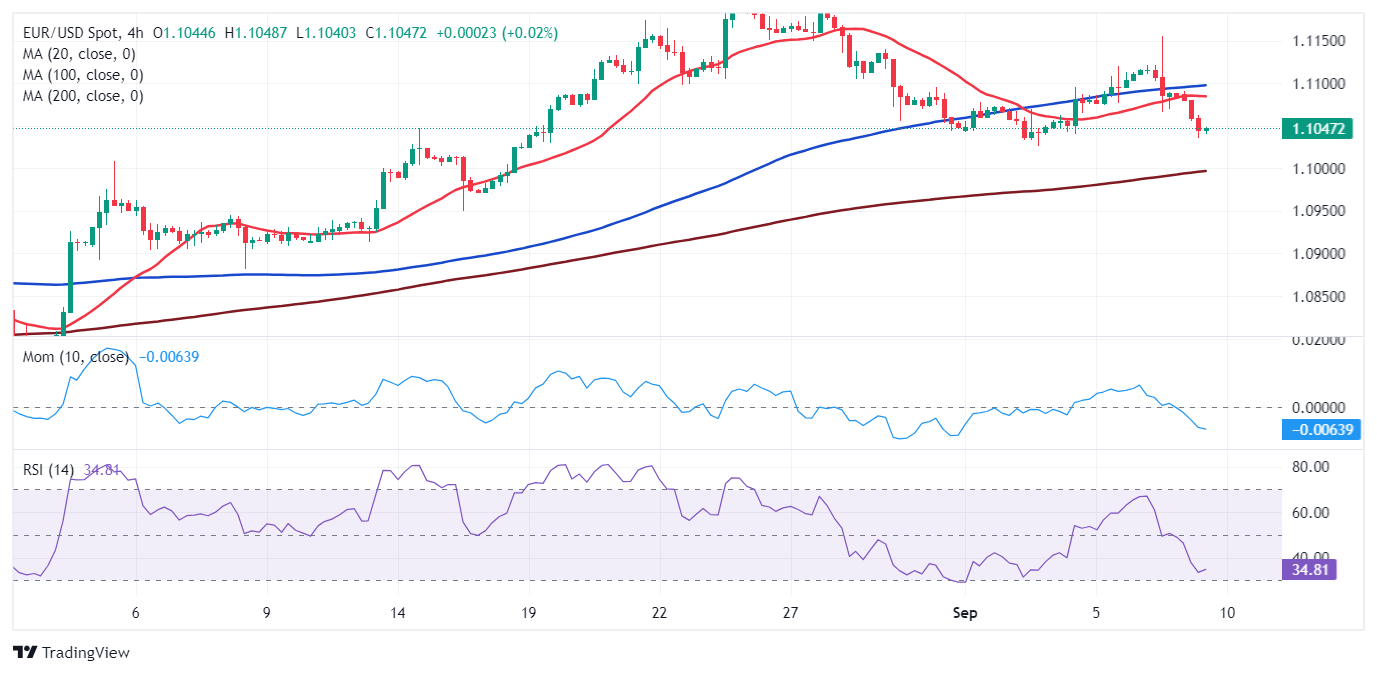 - EUR/USD under selling pressure, critical support at 1.1020.