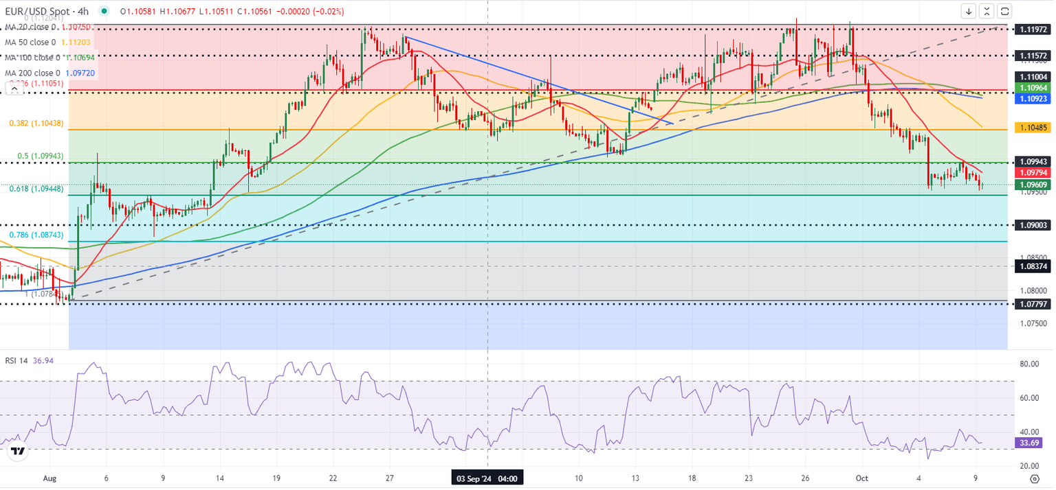 After the September meeting, the Fed decided to lower the policy rate by 50 basis points (bps). Investors will pay close attention to discussions surrounding this decision within the minutes. In case the publication shows that policymakers keep an open mind about opting for large rate cuts in the near future, the immediate market reaction could cause the USD to weaken. According to the CME FedWatch Tool, markets are currently pricing in a 13% probability of the Fed lowering the policy rate by another 50 bps at the November meeting.