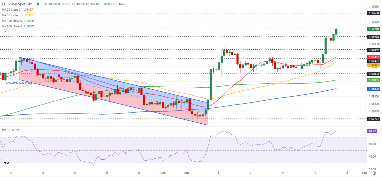 EUR/USD gathered bullish momentum after breaking out of its one-week-old range and reached its highest level since early January above 1.1000. The pair's near-term technical outlook points to overbought conditions as market focus shifts to the US inflation data.