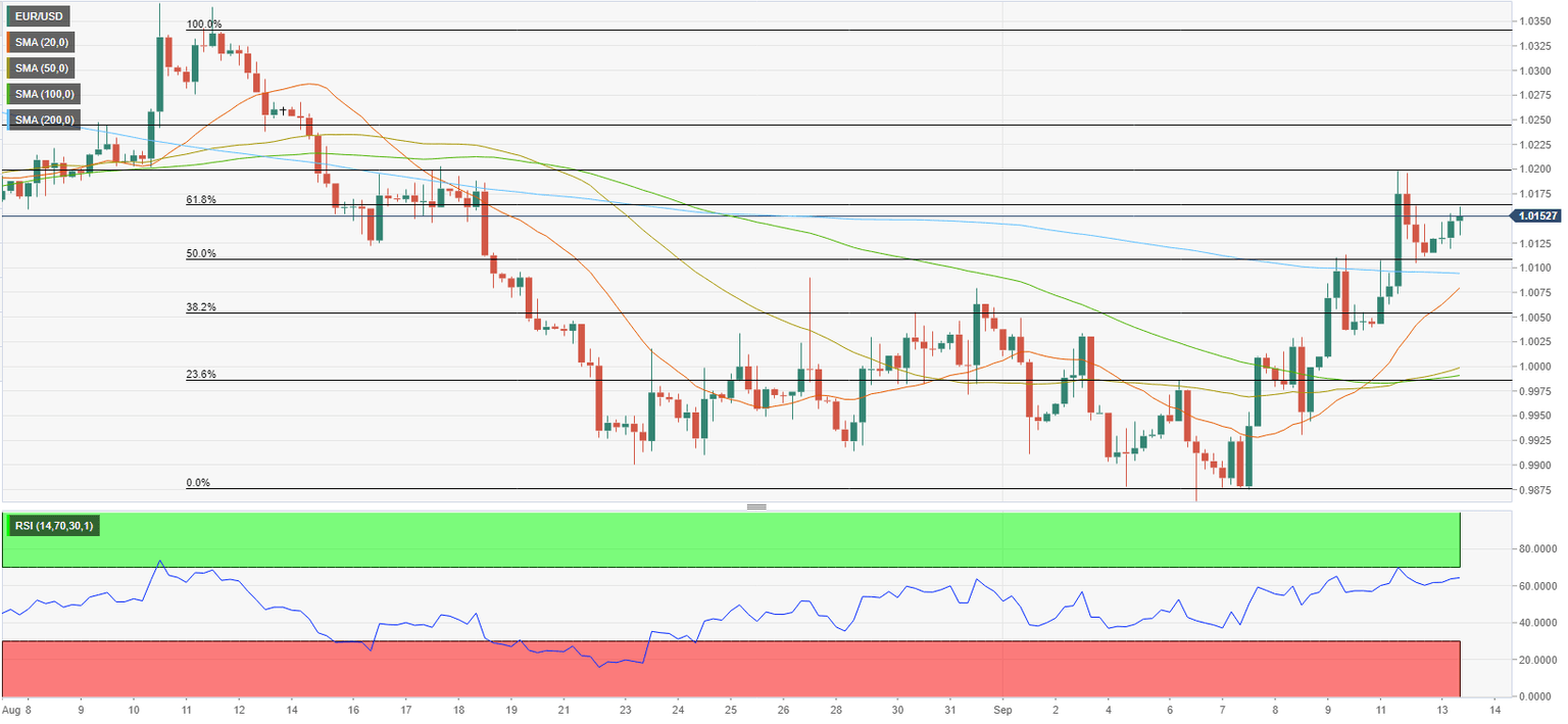 EUR/USD is trading within a touching distance of 1.0160 (Fibonacci 61.8% retracement of the latest downtrend). In case the pair clears that hurdle and flips into support, it could test 1.0200 (psychological level, Monday high) and target 1.0245 (static level) afterwards.