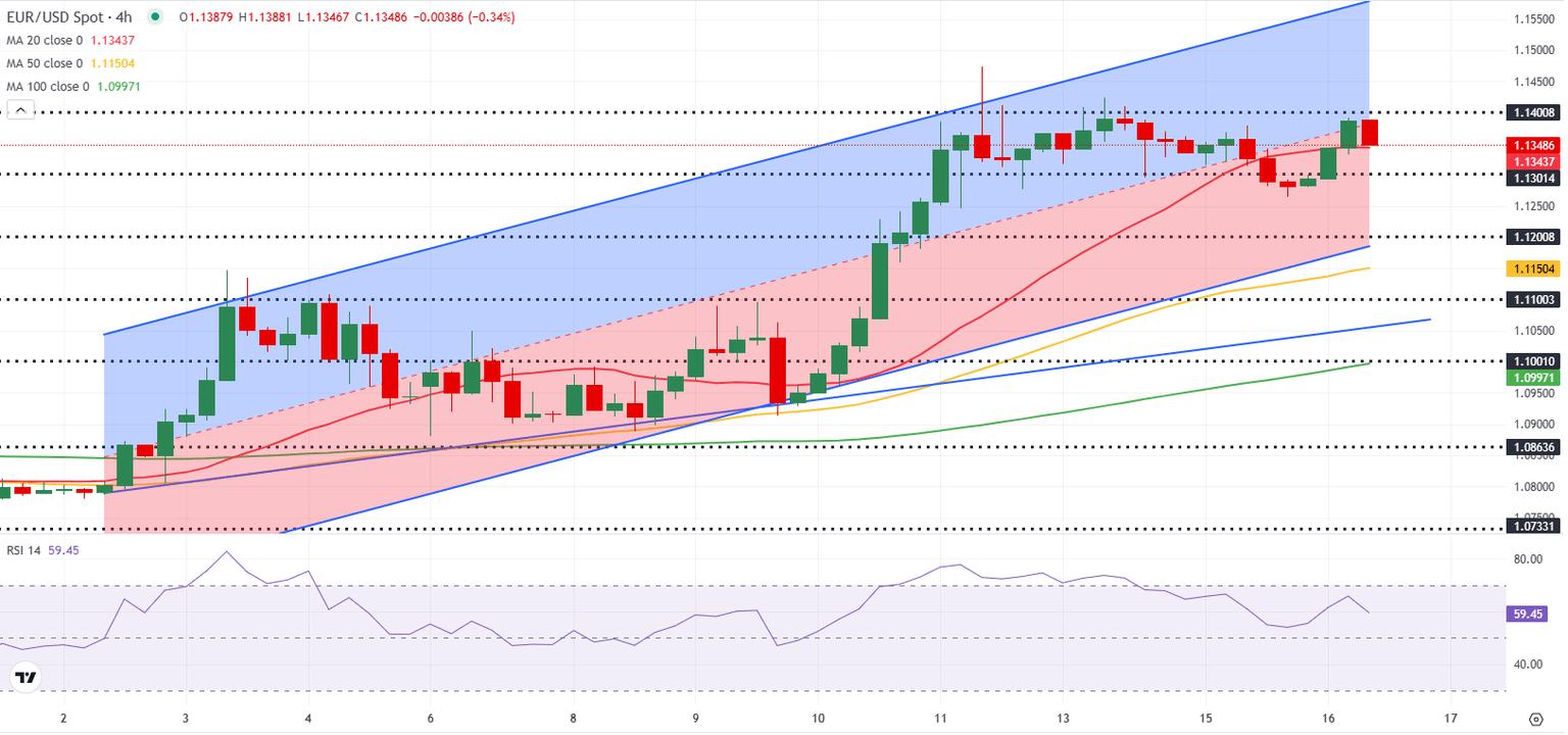 The Relative Strength Index (RSI) indicator on the 4-hour chart holds above 60 and EUR/USD remains above the 20-period Simple Moving Average (SMA), reflecting the bullish tilt in the short-term outlook.