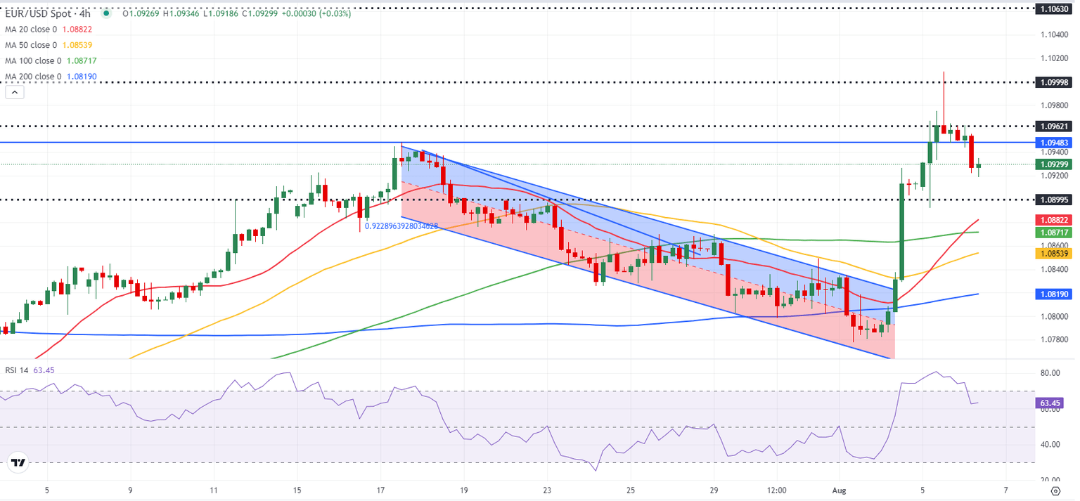 1.0900 (psychological level, static level) aligns as first support for EUR/USD before 1.0870 (20-day Simple Moving Average(SMA)) and 1.0830 (200-day SMA). On the upside, interim resistance seems to have formed at 1.0960 (static level) before 1.1000 (psychological level, static level). A daily close above 1.1000 could attract technical buyers and open the door for another leg higher toward 1.1060 (static level).