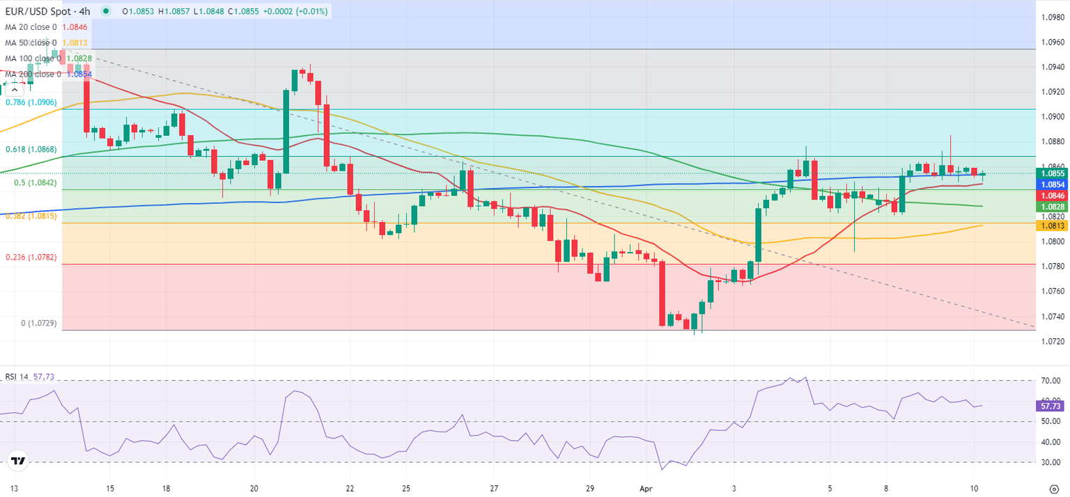 The Relative Strength Index (RSI) indicator on the 4-hour chart stays above 50, pointing to a slightly bullish bias. On the upside, the Fibonacci 61.8% retracement of the latest downtrend aligns as first resistance at 1.0870. If the pair manages to flip this level into support, it could target 1.0900 (Fibonacci 78.6% retracement) and 1.0950 (beginning point of the downtrend) next.