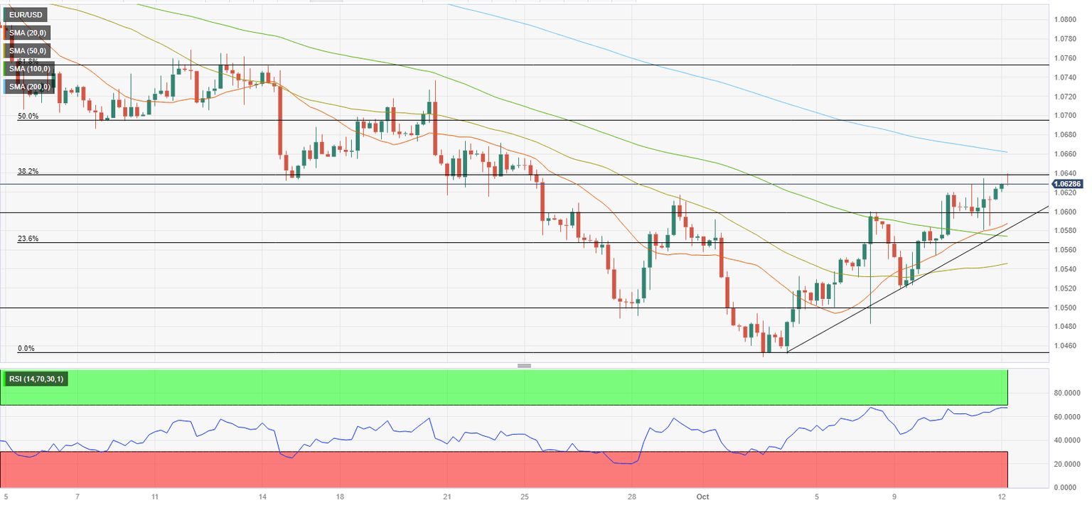 On the upside, immediate resistance is located at 1.0640 (Fibonacci 38.2% retracement of the latest downtrend) before 1.0670, where the 200-period Simple Moving Average (SMA) is located, and 1.0700 (Fibonacci 50% retracement, psychological level).