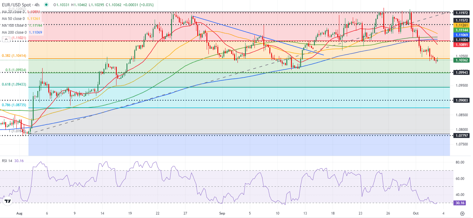 If EUR/USD manages to reclaim 1.1040, next strong resistance could be seen at 1.1100, where the 100-period and the 200-period Simple Moving Averages (SMA) meet the Fibonacci 23.6% retracement, ahead of 1.1150 (static level).