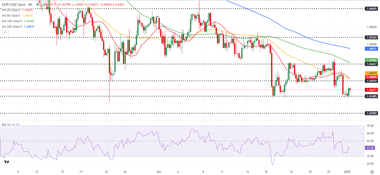 After ending the year on the back foot, EUR/USD struggles to gain traction on the first trading day of 2025. The pair's near-term technical outlook suggests that the bearish bias stays intact but an improving risk mood could help the pair limit its losses.